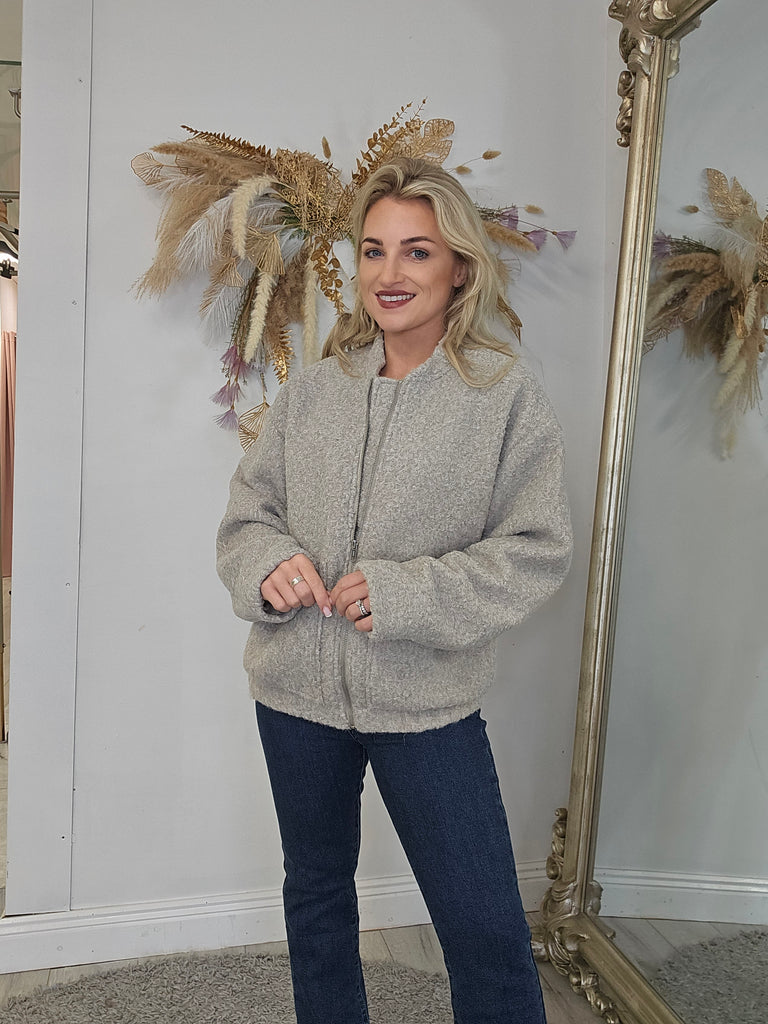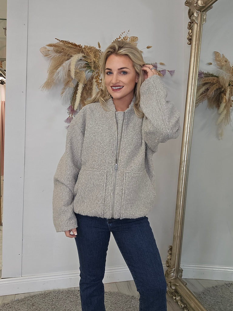 Experience the perfect blend of style and comfort with the Fran Bomber in Silver Birch. Crafted from a modern boiled wool with a soft, cozy texture, this jacket is ideal for autumn and winter. Its striking bright blue color adds a fresh, vibrant touch to your wardrobe. Designed with two spacious front pockets and a zip closure, it combines practicality with contemporary flair, keeping you warm and effortlessly stylish throughout the season.