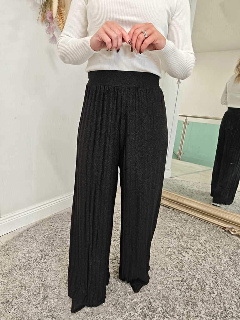 Elevate your style with our Glitz Sparkle Pleated Cullottes. Shimmer and shine with every step in these chic and versatile pants. Perfect for any occasion, these cullottes will add a touch of glamour and sophistication to your wardrobe. Step out with confidence and make a statement in these must-have pants!