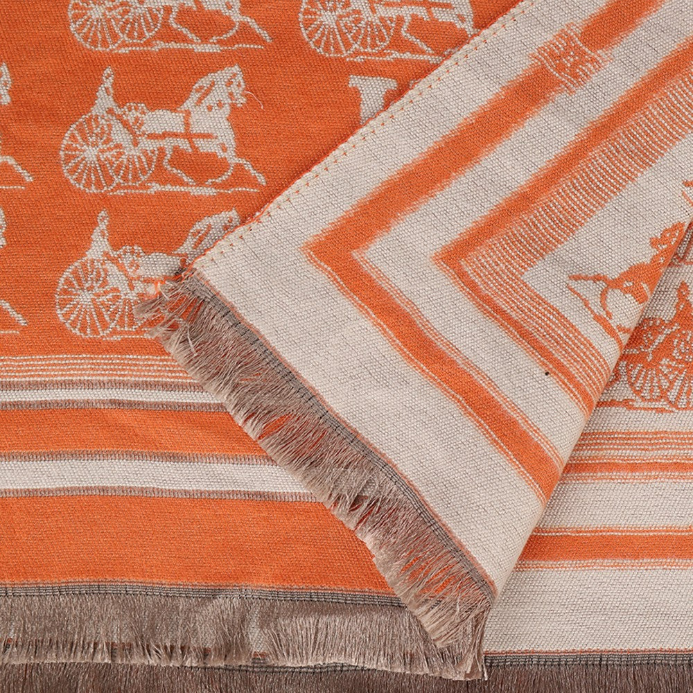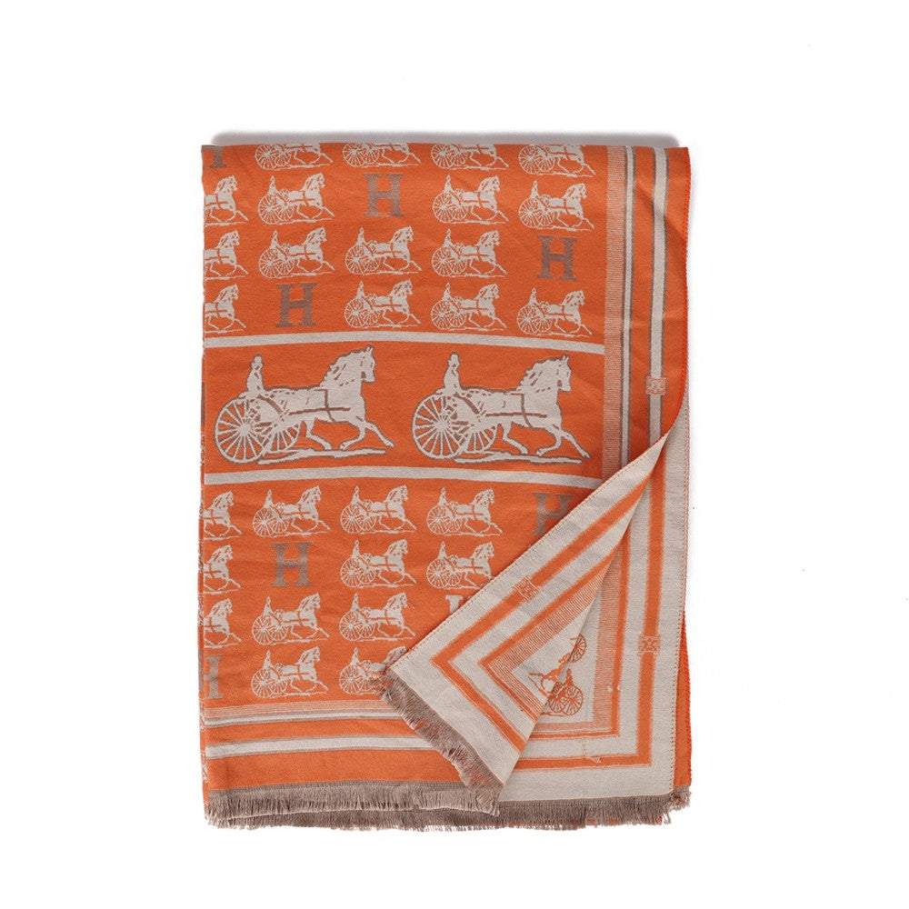 Wrap yourself in timeless elegance with this exquisite cashmere scarf, featuring a striking horse print in warm orange and cream tones. Crafted from premium cashmere, it delivers unparalleled softness and warmth while making a sophisticated style statement. The refined equestrian motif adds character and luxury to any outfit, whether draped casually or styled formally. Perfect for those who appreciate fine craftsmanship and distinctive design. An investment piece that transcends seasons and trends, elevating your everyday wardrobe with understated opulence.