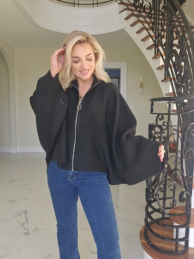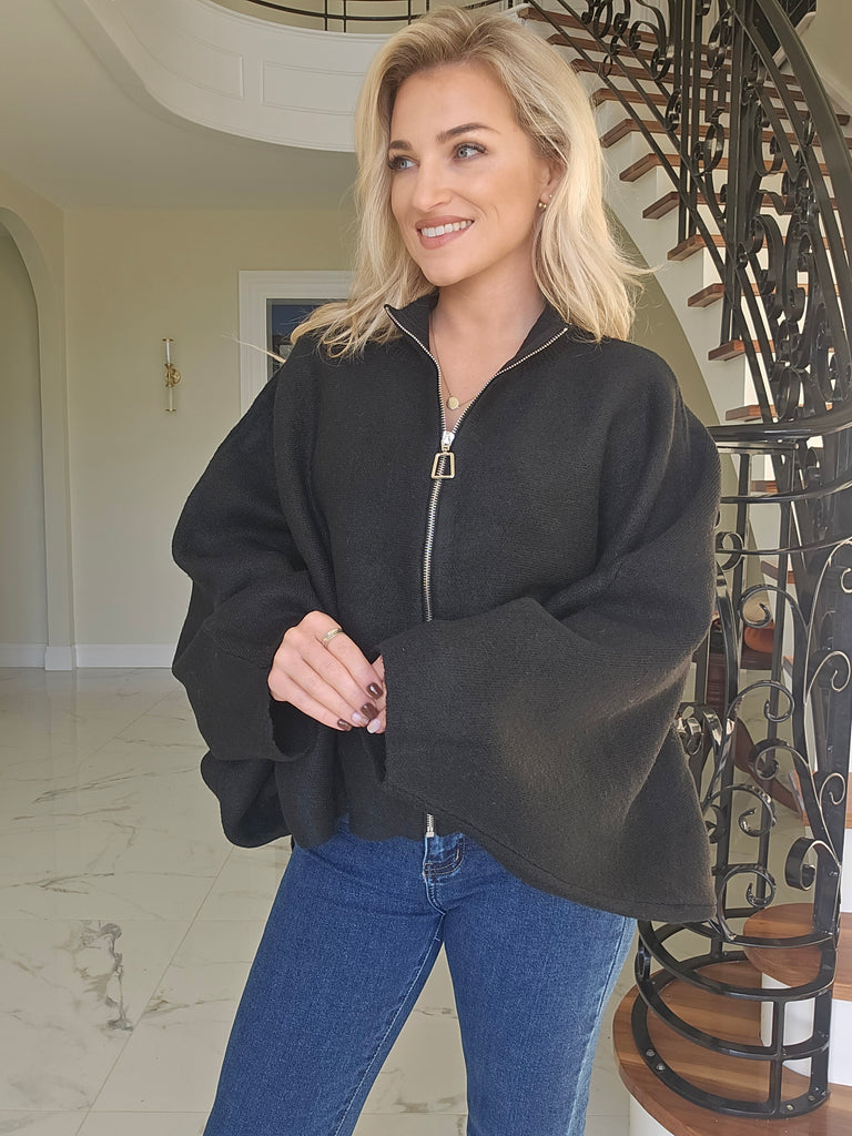 Lucy Black Zip Highlow Knit