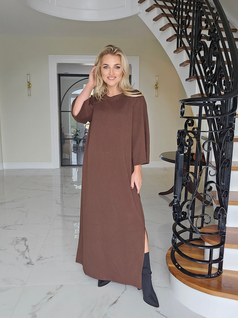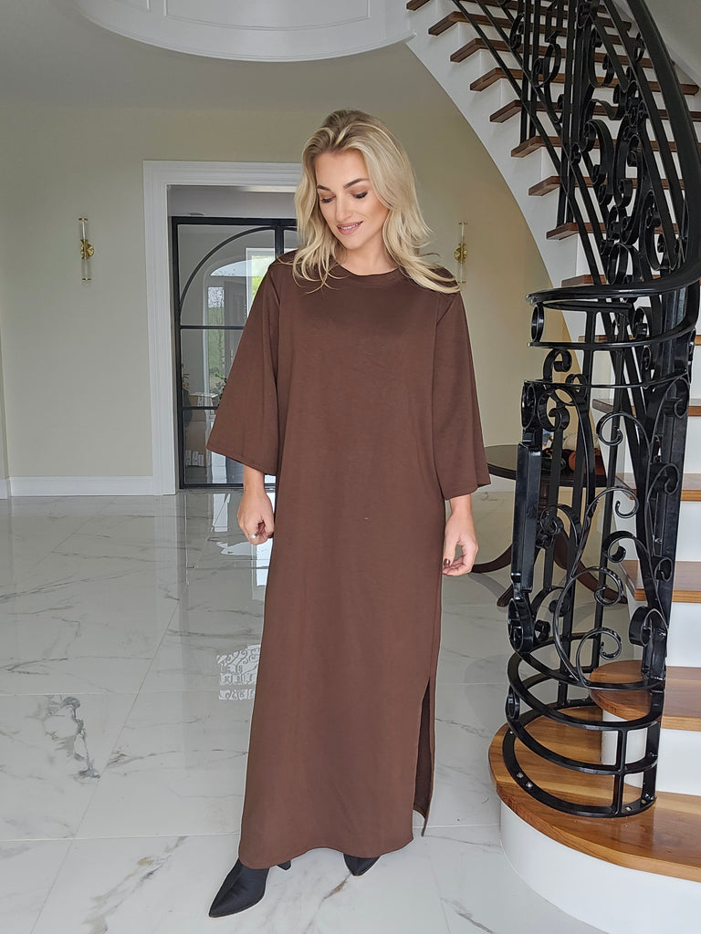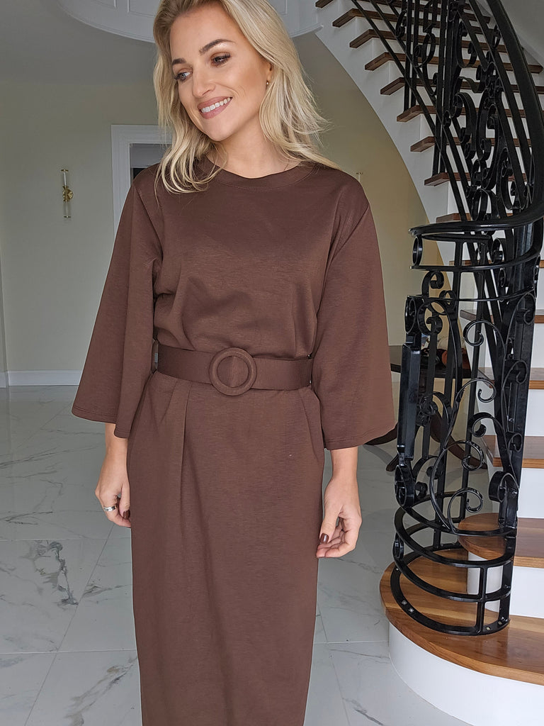Elevate your wardrobe with the Nina Dress. Made from luxurious suedette material, this dress features half sleeves and a material belt for the perfect fit. The slight slit on one side adds a touch of elegance, while the round neck makes it perfect for any occasion. From day to night, this midi dress will take you there in style.